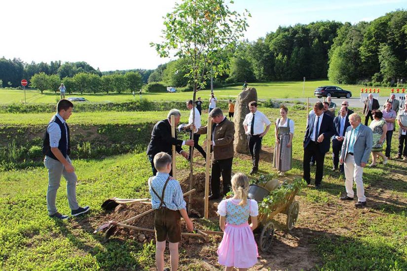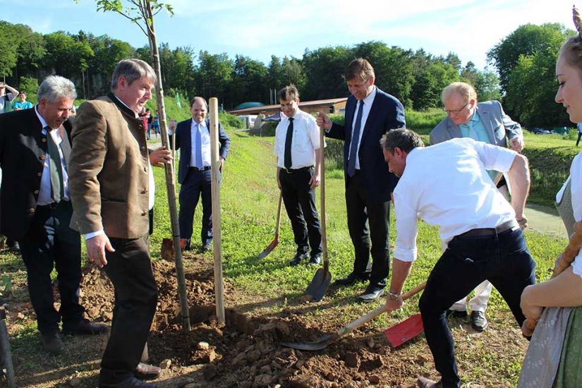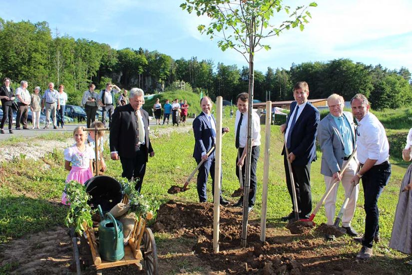 Zu Beginn des 50-jährigen Jubiläums marschierten die Ehrengäste, darunter Umweltminister Thorsten Glauber und Waldkönigin Johanna Gierl, gemeinsam mit der Blaskapelle Obertrubach zum Eingang der Biogasanlage Neuner und pflanzten gemeinsam eine Elsbeere. „Auf, dass er wachse und gedeihe, zum Andenken an das 50-jährige Jubiläum der WBV Fränkische Schweiz“, so Ludwig Thiem zur Pflanzung des Baumes.