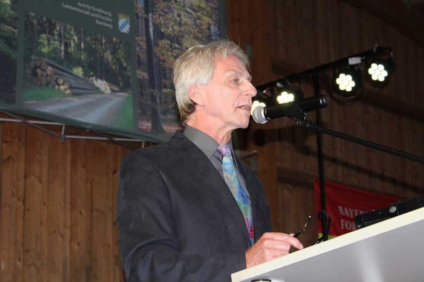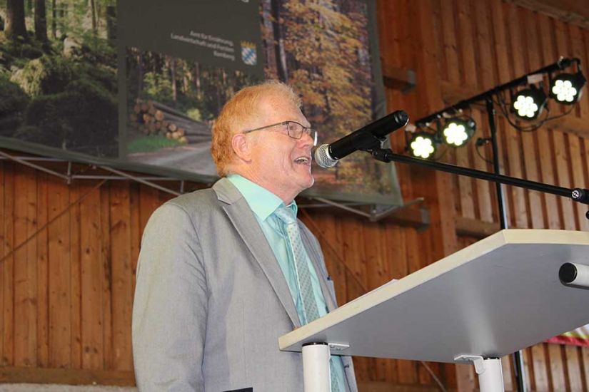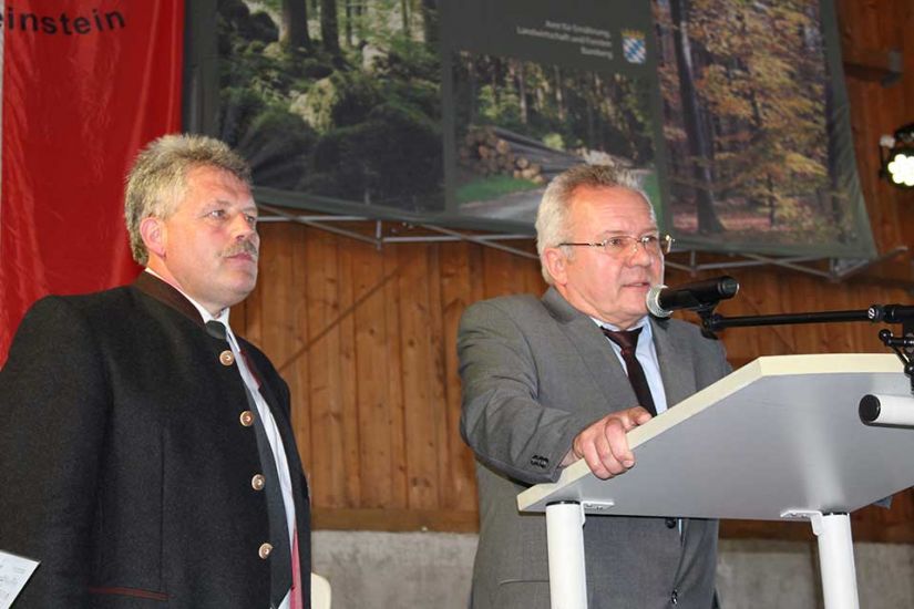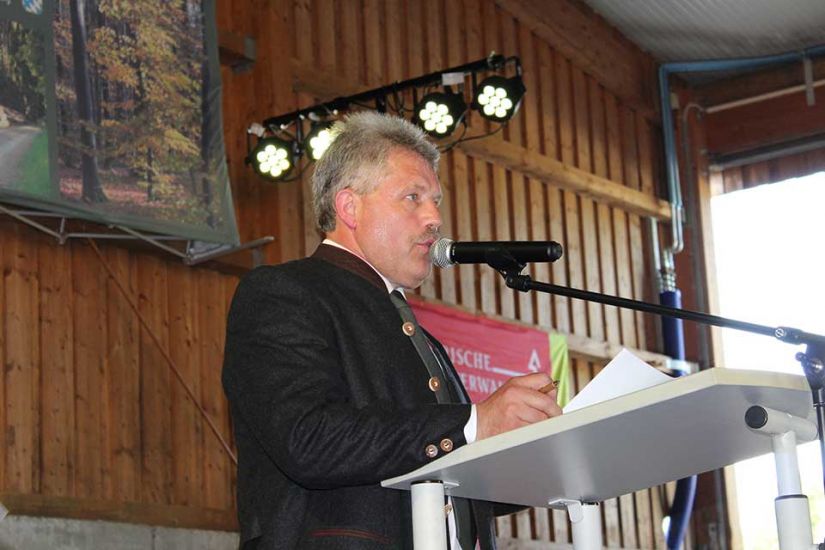 Zurück in der Festhalle begrüßten einige der Ehrengäste das Publikum. „Die WBV war noch nie so wichtig wie heute und ich bin sehr froh, dass Sie den Waldbesitzern immer mit Rat und Tat zur Seite stehen“, so der Abgeordnete des bayerischen Landtags Michael Hofmann. Die große Bedeutung der WBV machte der Leitende Forstdirektor Hans-Rüdiger Schmittnägel deutlich: „So kleine Strukturen, wie wir sie hier haben, die Pflanzenbestellung oder die Holzvermarktung sind ohne die WBV nicht möglich. Deshalb finde ich ist die Wertschätzung für die Forstwirtschaft generell sehr wichtig.“