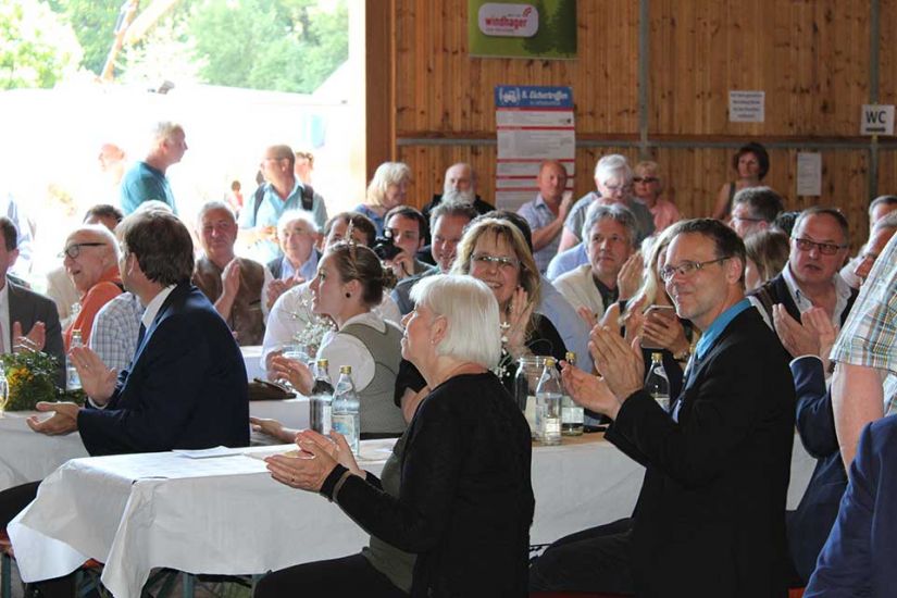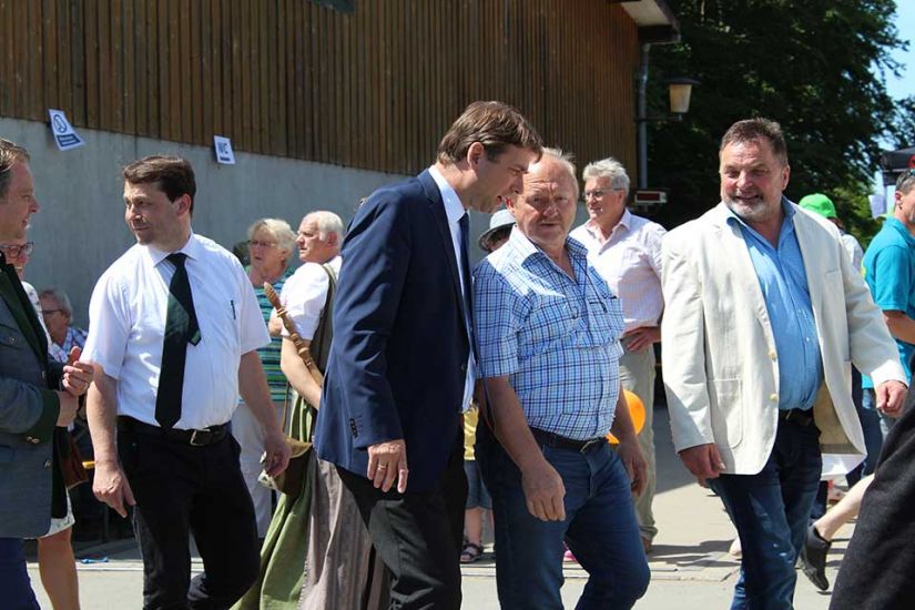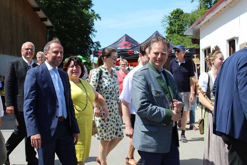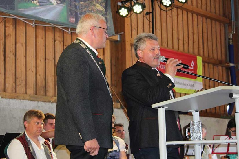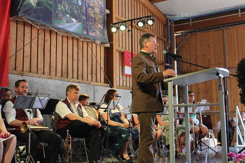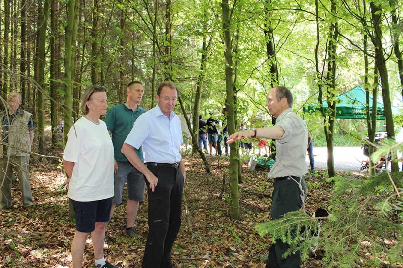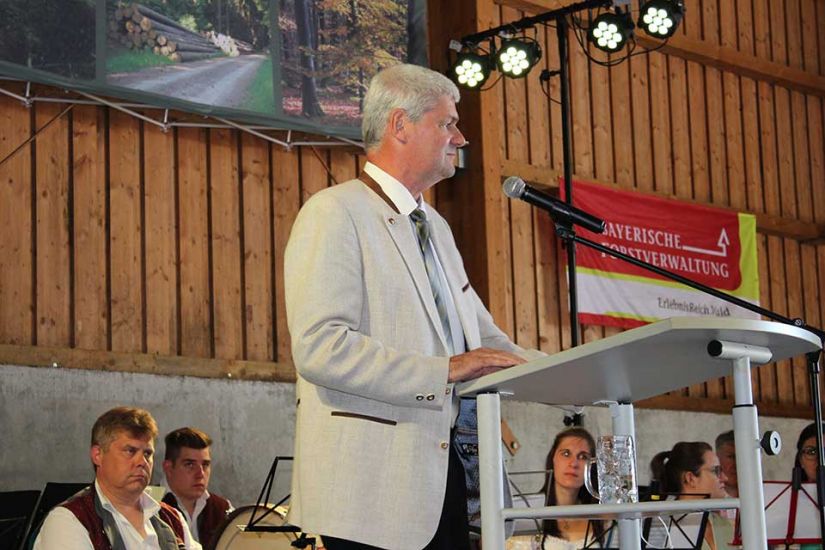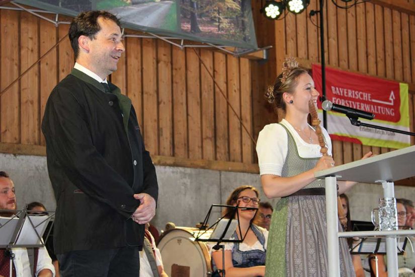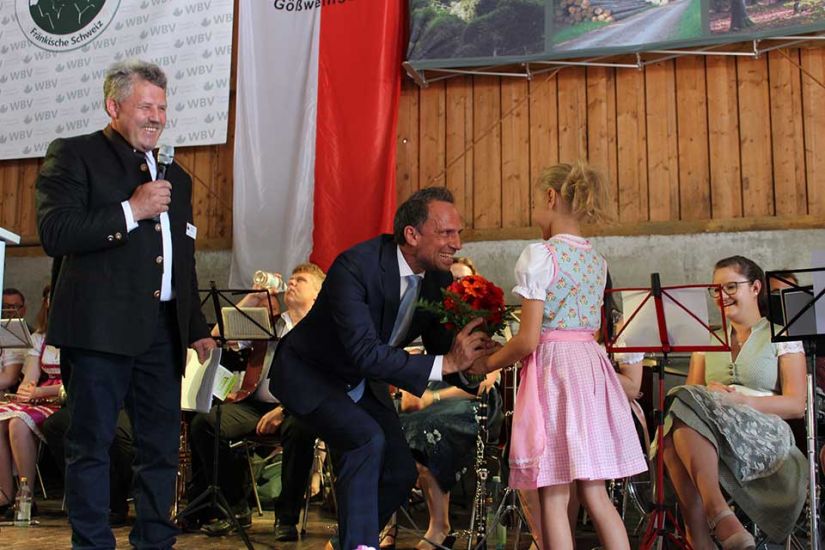 Die Leute sangen gemeinsam und teilten nach dem Gottesdienst Brot miteinander. Währenddessen traten die Ehrengäste auf die Bühne und begrüßten die Besucher. Ein besonderer Ehrengast für die WBV Fränkische Schweiz war der bayerische Umweltminister Thorsten Glauber, der sich das Fest für die Waldbauern nicht entgehen ließ. „Ich danke Ihnen allen für die mühevolle Arbeit an unserer Umwelt und der Natur“, so Glauber. Er versicherte den Waldbesitzern außerdem den bayerischen Waldpakt weiterhin zu unterstützen. Gewürdigt wurde die Arbeit der Waldbesitzer auch durch Josef Ziegler, Präsident des bayerischen Waldbesitzerverbandes. „Hinter dem Wald und den Bäumen stehen Familien, die mit Fleiß und Mühe unsere Natur in Bayern erhalten“, so Josef Ziegler.