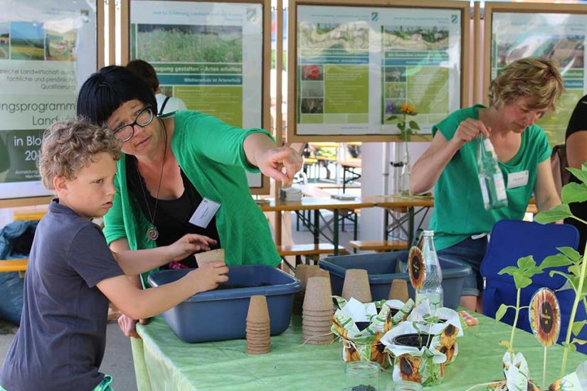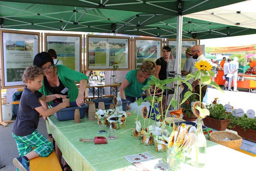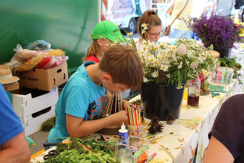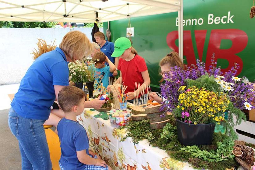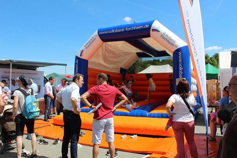 Die kleinsten Besucher konnten sich auf der Hüpfburg der Volksbank Forchheim austoben oder mit Wildblumen, Holzscheiben und Moos etwas basteln.