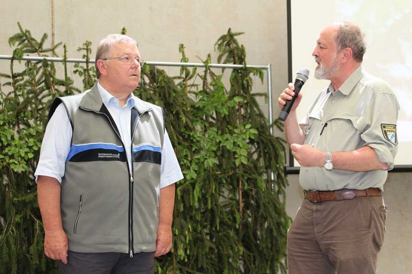Am Nachmittag gab es für alle interessierten Waldbauern einige Fachvorträge. Welche Baumarten eignen sich besonders im Klimawandel? Diese Frage stellte sich beispielsweise Hans-Joachim Klemmt von der bayerischen Landesanstalt für Wald und Forstwirtschaft. Seine Antwort war: „Neue Bäume braucht das Land“. Trockenheit, Extremereignisse und der Käfer machen den Bäumen in Oberfrankens Wäldern stark zu schaffen. Hans-Joachim Klemmt rät daher zu Baumarten wie der Küsten-Tanne aus dem westlichen Nordamerika oder zur Schwarzkiefer aus Südeuropa.